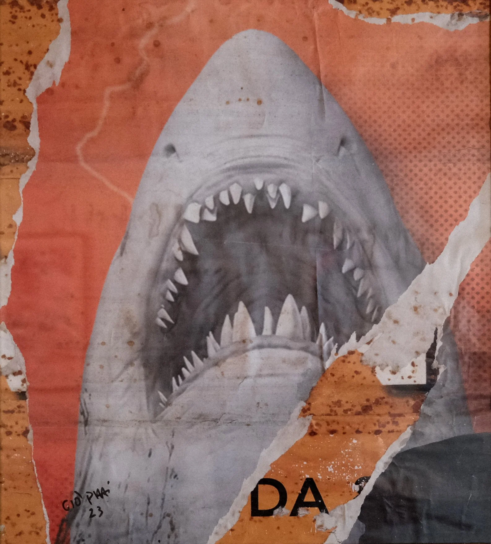 Bad tongue / 118x98 2023 / Crema/Malaga / Collage